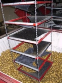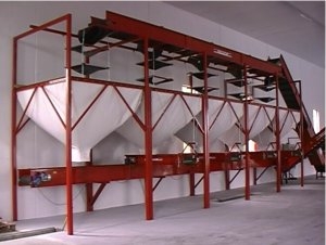 Typisk silosystem efter tvättlinjen, där man kan tvätta en sort och transporteras till en silo medan man packeterar från en annan silo. Tvätten kan i princip gå utan avbrott.